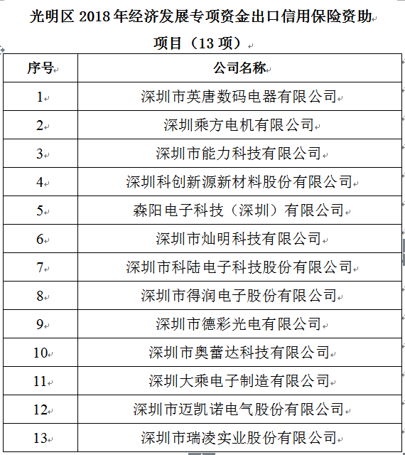 根據(jù)《深圳市光明新區(qū)經(jīng)濟發(fā)展專項資金管理辦法及配套實施細則》規(guī)定,經(jīng)研究,現(xiàn)將深圳市光明區(qū)經(jīng)濟發(fā)展專項資金擬資助項目——出口信用保險資助項目13項在深圳市光明新區(qū)在線予以公示,公示時間為2018年12月10日至12月14日,現(xiàn)向社會廣泛征求意見。