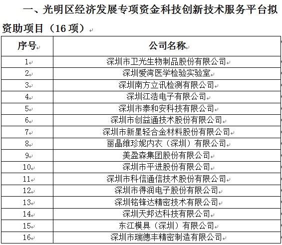 根據《深圳市光明新區經濟發展專項資金管理辦法及配套實施細則》規定,經研究,現將深圳市光明區經濟發展專項資金擬資助項目——科技創新技術服務平臺、高新技術產業化、企業技術改造資助項目37項在深圳市光明區政府在線(網址http://www.szgm.gov.cn)予以公示,公示時間為2018年12月12日至12月18日,現向社會廣泛征求意見。