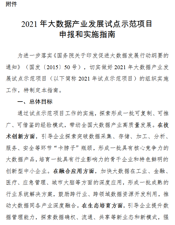 附件:2021年大數(shù)據(jù)產(chǎn)業(yè)發(fā)展試點(diǎn)示范項(xiàng)目申報(bào)和實(shí)施指南.doc